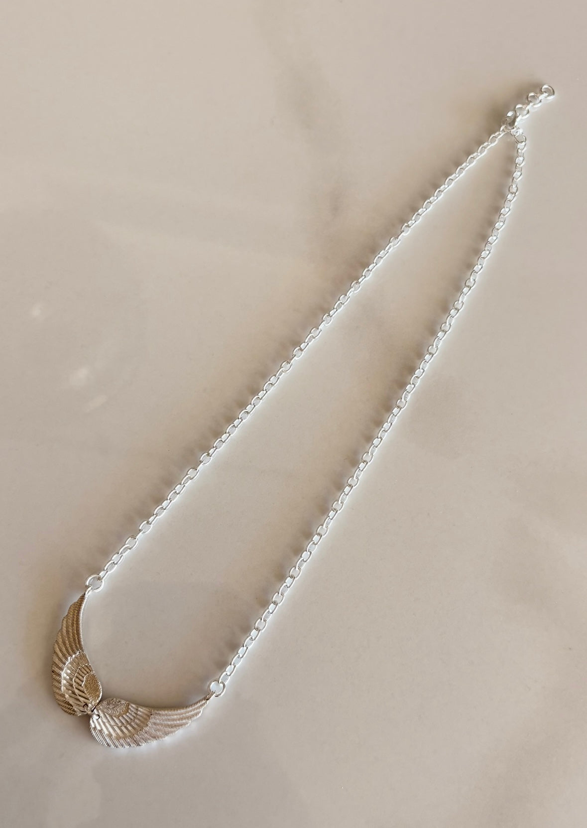 Collar ANGEL, con cadena de eslabones y dos alas de ángel en medio hechas en plata maciza.